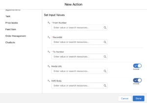 - Optional Media URL and SMS Body.